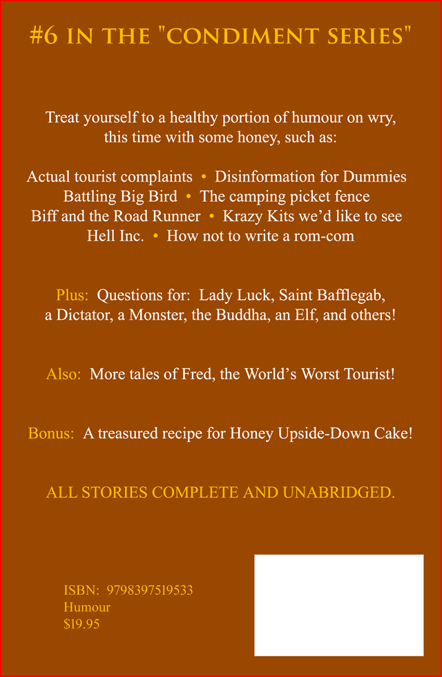 Bruce Gravel, back cover for Humour on Wry, with Honey